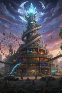 If it weren’t for the giant collection of towering black crystals, and the well-paved road leading from the Dungeoneer’s Guild to this place, this place would look rather normal. As it was, it almost looked like an attraction at a theme park.